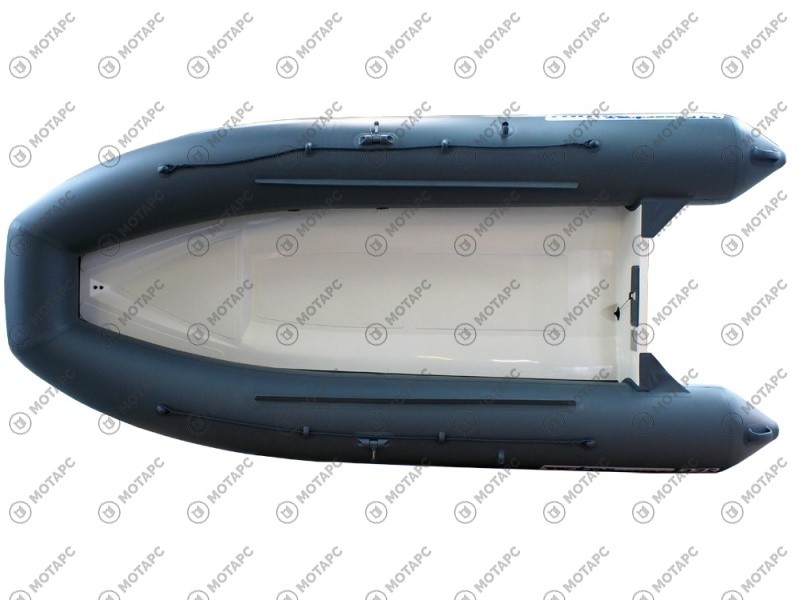 Лодка РИБ с жестким стеклопластиковым корпусом и надувным баллоном (плотность ПВХ 1050-1100 г/м2), состоящая из трех секций, что повышает безопасность и непотопляемость лодки.