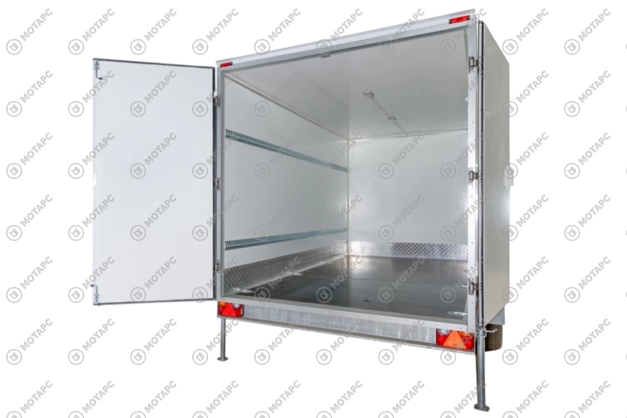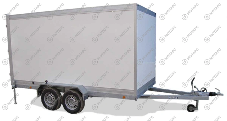 Рамы прицепов оцинкованы, фургон выполнен из изотермических сэндвич-панелей толщиной 30 мм. Прицеп двухосный, с тормозом наката. Подвеска колес (R14) на четырёх полуэллиптических рессорах с гидравлическими амортизаторами. В задней части прицепа имеются опорные стойки, исключающие опрокидывание при погрузке, и распашные двери с фиксацией в открытом положении. Опорное и запасное колесо в стандартной комплектации. -