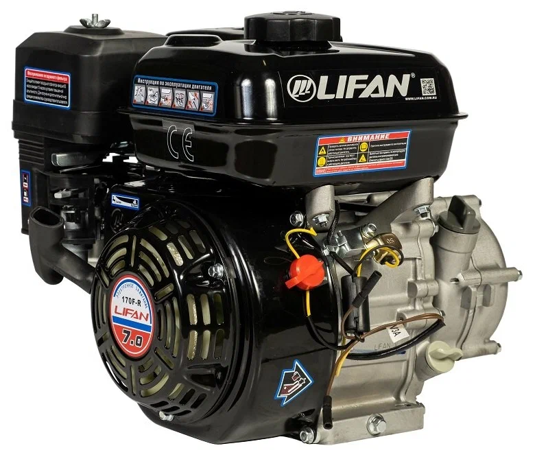 Наличие понижающего редуктора с центробежным сцеплением позволяет значительно расширить область применения двигателя. Бензиновый двигатель Lifan 170F-R разработан для установки на мототехнику различного уровня. Двигатель хорошо подходит для установки на культиваторы и мотоблоки, мотобуксировщики, мотопомпы, генераторы и другую технику.
