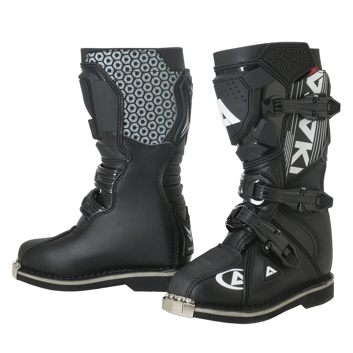 Детские мотоботы ATAKI MX-002 – незаменимый элемент экипировки юного райдера от японской фирмы ATAKI, который с успехом выдержит самые суровые оффроуд-испытания. Выполнены из двухслойной эко-кожи с влагоотталкивающей пропиткой. Снабжены внутренней подкладкой из поролона и противоскользящими вставками в области голени. Имеют особое полимерное покрытие для сохранения формы положения стопы. Двойная стелька обеспечивает амортизацию стопы и заметно продлевает срок эксплуатации обуви. Прочная и гибкая подошва из средне-жёсткой резины, разделенная на сегменты для большей гибкости и лучшего сцепления с педалями, обладает отличным сцеплением с поверхностью и обеспечивает устойчивость и точность управления.