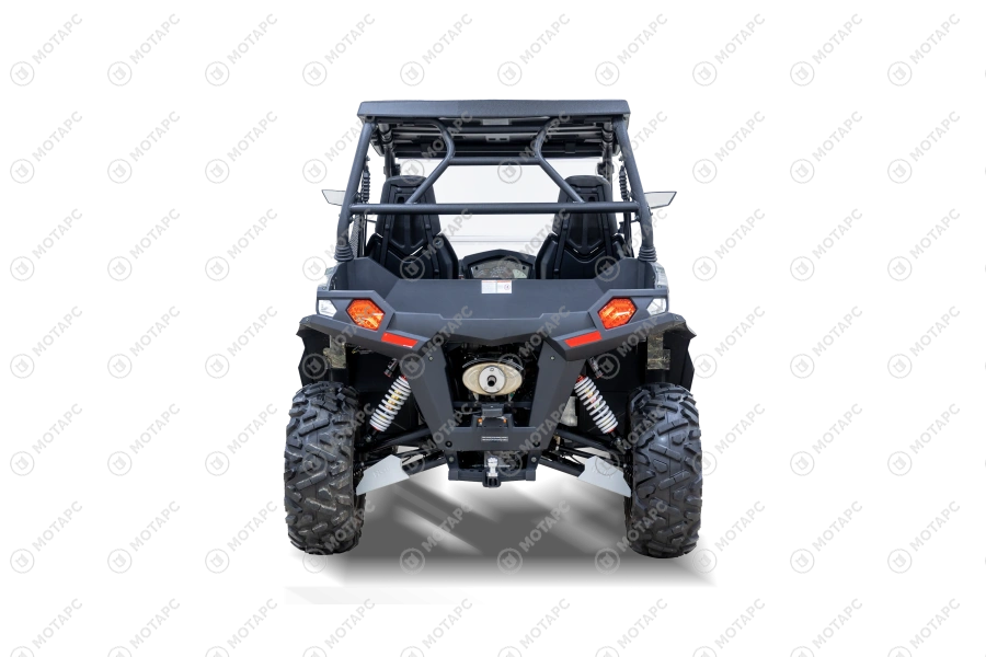 Мотовездеходы укомплектованы с завода вариатором канадского производства, снабжены емким багажником для перевозки грузов, пластиковым обвесом с расширителями арок, световой оптикой, позволяющей передвигаться по дорогам общего пользования. UTV комплектуется независимой подвеской с двойными А-образными рычагами спереди и сзади, полностью регулируемые на сжатие и отбой газовые амортизаторы. -