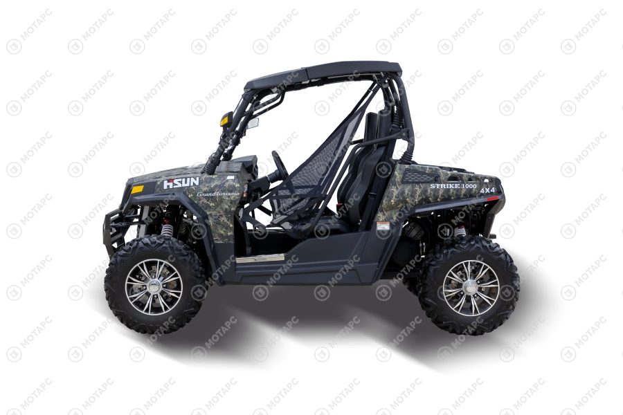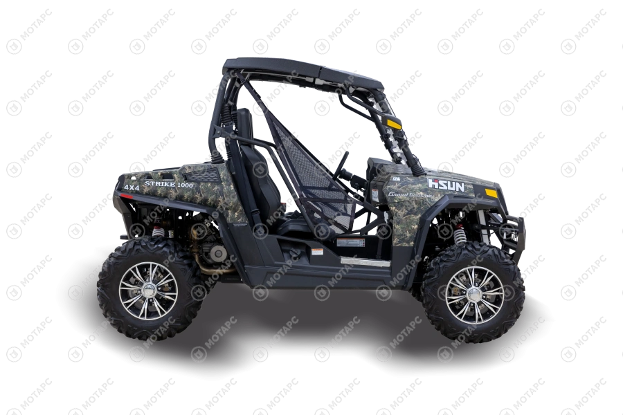HiSUN STRIKE 1000 EPS отличается мощностью двигателя. Мощная полноприводная модель с блокировкой переднего дифференциала и двухцилиндровым V-образным двигателем жидкостного охлаждения с впрыском топлива. Дополнительно можно установить крышу, светодиодные фары, лобовое стекло и другое дополнительное оборудование.