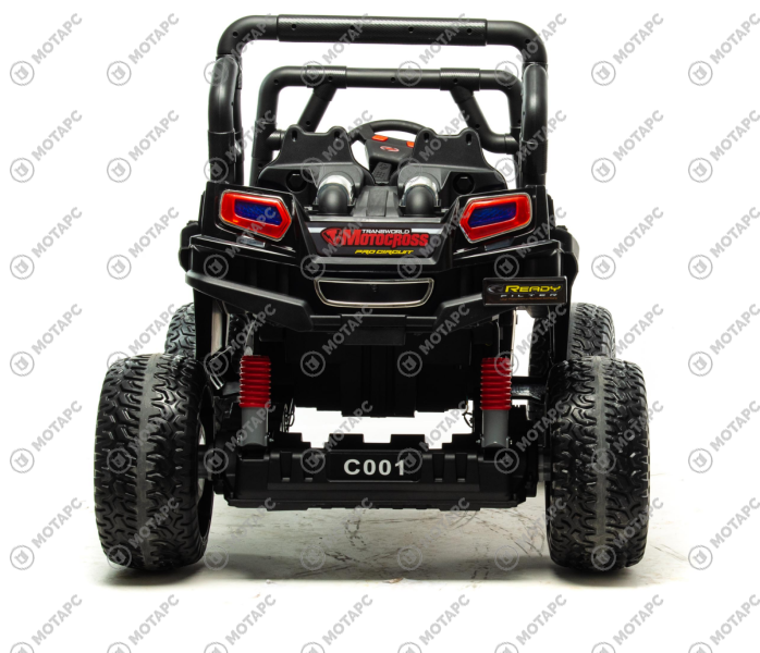 Игрушка C001 (2021 г.) отлично подойдет для детей разных возрастов. Конструкция выдерживает нагрузочный максимум до 30 кг. Комфортное катание обеспечивается плавным ходом. В состояние рабочей готовности электромобиль для детей приводится нажатием на кнопку старта. Маневренный руль реагирует быстро и безопасно. Колеса сбалансированы и устойчивы. Управление детским электромобилем может осуществляться с помощью родительского пульта или самостоятельно ребенком из салона. Звуковые сигналы похожи на работу настоящего автомобиля.Музыкальное сопровождение позволит сделать прогулку максимально веселой. Детская машина на аккумуляторе без подзарядки может ехать на протяжении 90-120 минут. Аккумулятор: 12V7AH*1 Задний привод Диски черные Для детей от 3х лет.