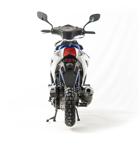 Особенностями модели являются: двойная фара, литые диски. Установленная резина позволяет ездить не только по асфальту, но и по грунтовым дорогам. Помимо вместительного внутреннего подсидельного багажного отделения, имеется дополнительный задний багажник. Двигатель с принудительным воздушным охлаждением, не перегревается даже в сильную жару.