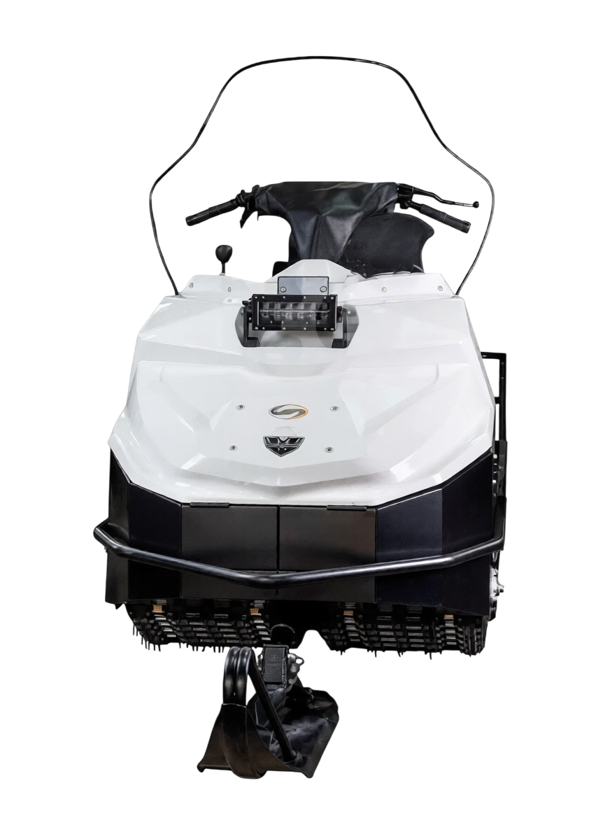 Подогрев ручек и руля газа, чехол руля с карманом, фара передняя светодиодная 2х режимная 48W, задняя светодиодная, гидравлический тормоз. Привод на моторах 27 и 29 л.с. на эластичной муфте, реверс с коротким валом. -